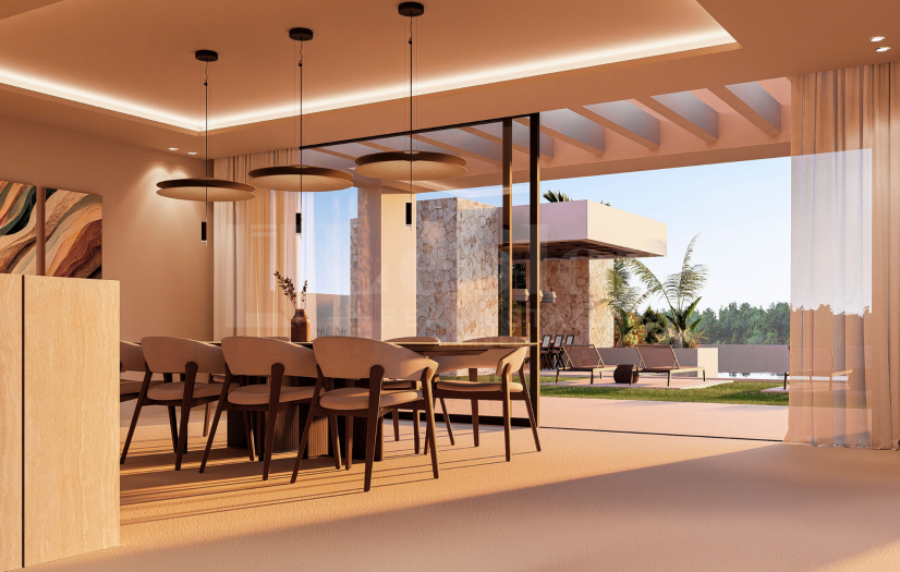 • Villa Natural e Integrada: arquitectura orgánica y envolvente, diseñada para parcelas con menor exposición al mar pero con un concepto de vida interior más íntimo, que se fusiona con la topografía y el paisaje.